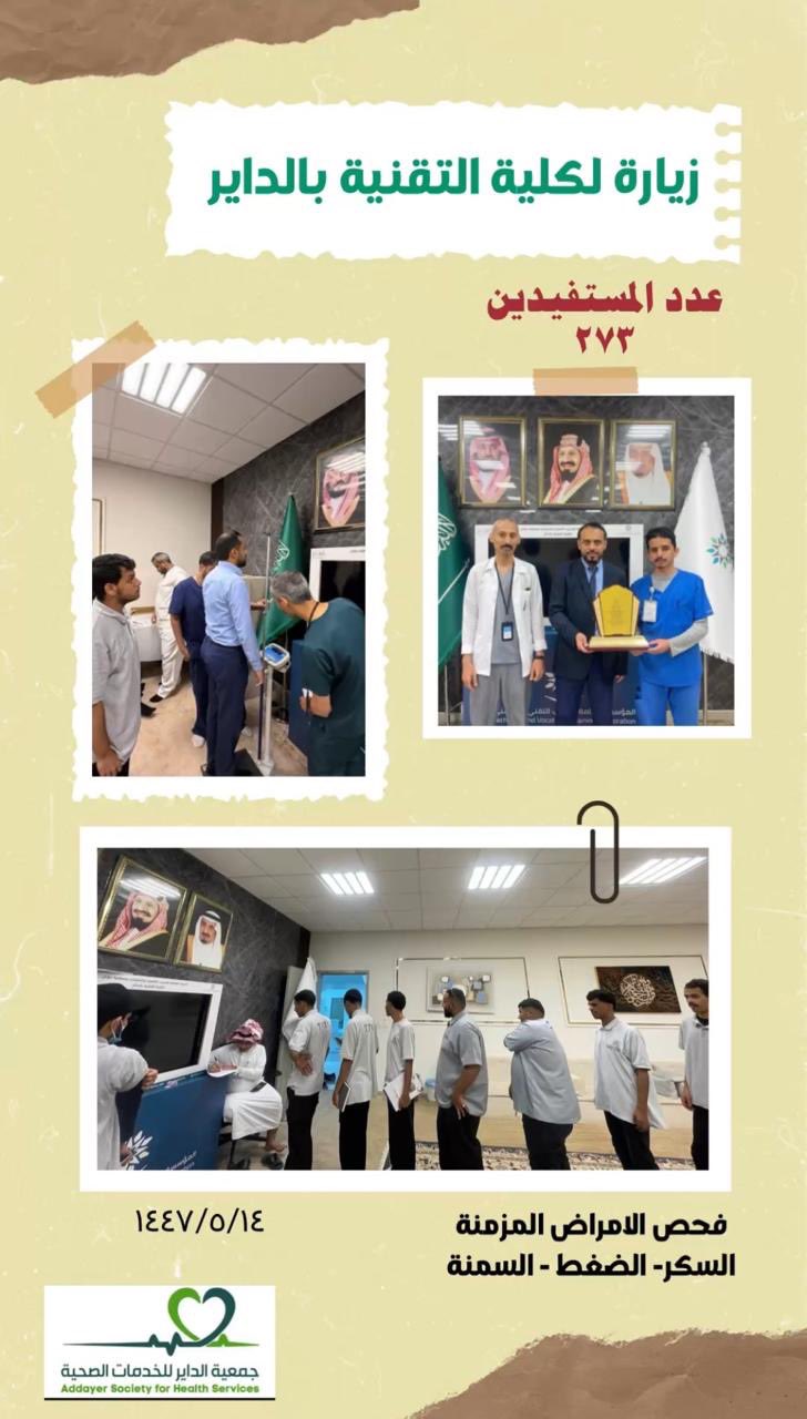 جمعية الداير للخدمات الصحية تفعل برنامج فحص الأمراض المزمنة في الكلية التقنية بالداير
